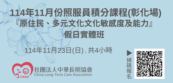 114年11月【長照積分課程】長期照顧服務人員『原住民、多元文化文化敏感度及能力』(假日實體班-彰化場)