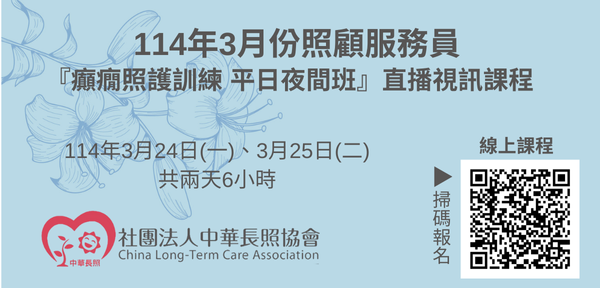 114年03月【長照積分課程】長期照顧服務人員『直播視訊課程癲癇照護訓練平日夜間班』(線上課程)