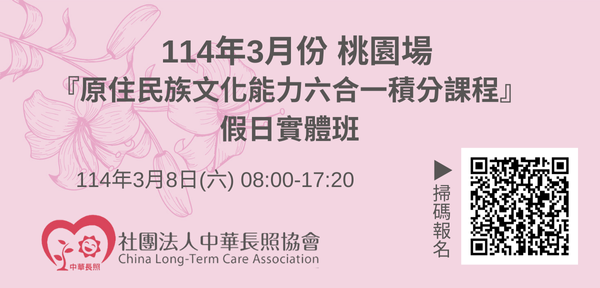 114年03月【長照積分課程】長期照顧服務人員『原住民族文化能力六合一積分課程』(假日實體班)