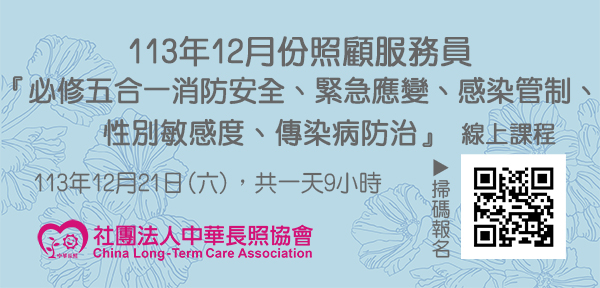 113年12月【長照積分課程】長期照顧服務人員『必修五合一消防安全、緊急應變、感染管制、性別敏感度』