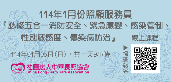 114年01月【長照積分課程】長期照顧服務人員『消防安全、緊急應變、感染管制、性別敏感度、傳染病防治』