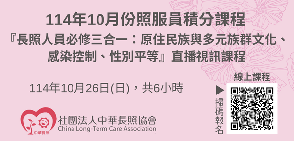 114年10月【長照積分課程】長期照顧服務人員『長照人員必修三合一積分課』(線上直播課程)