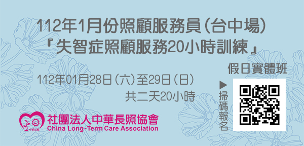 112年1月【長照積分課程】長期照顧服務人員『失智症照顧服務20小時訓練』(台中場)
