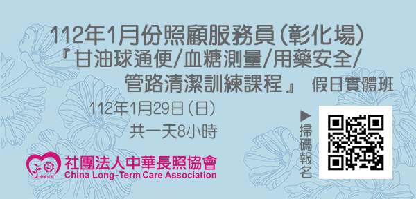 112年1月【長照積分課程】長期照顧服務人員『管路清潔/血糖測量 /用藥安全/甘油球通便訓練課程』(彰化場)