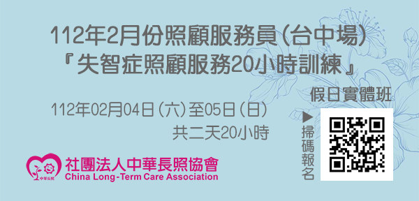 112年2月【長照積分課程】長期照顧服務人員『失智症照顧20小時訓練』(台中場)