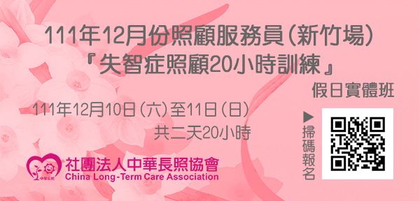 111年12月【長照積分課程】長期照顧服務人員『失智症照顧20小時訓練』(新竹場)