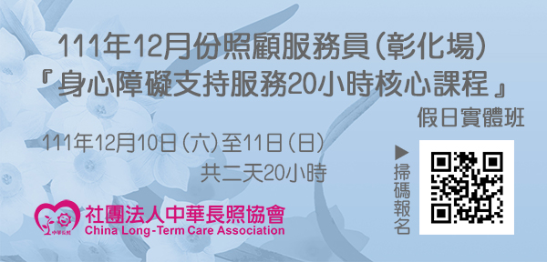 111年12月【長照積分課程】長期照顧服務人員『身心障礙支持服務20小時訓練』(彰化場)