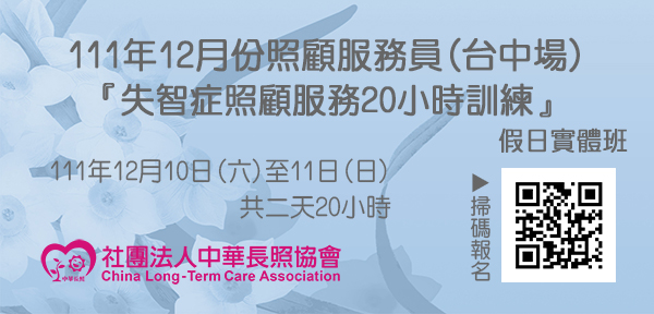 111年12月【長照積分課程】長期照顧服務人員『失智症照顧服務20小時訓練』(台中主辦)