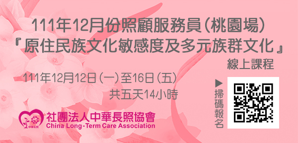 111年12月【長照積分課程】長期照顧服務人員『原住民族文化敏感度及多元族群文化』(桃園場)