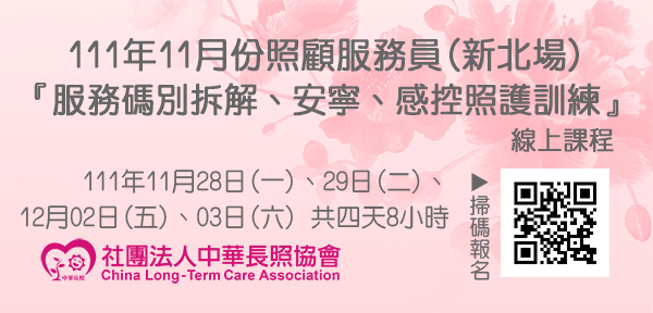 111年11月【長照積分課程】長期照顧服務人員『長照專業課程-服務碼別拆解、安寧、感控照護訓練』(新北主辦)