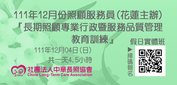 111年12月【長照積分課程】長期照顧服務人員『長期照顧專業行政暨服務品質管理教育訓練』(花蓮主辦)