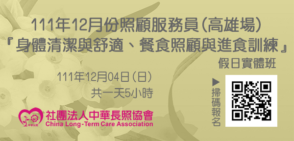 111年12月【長照積分課程】長期照顧服務人員『身體清潔與舒適、餐食照顧與進食訓練』(高雄場)