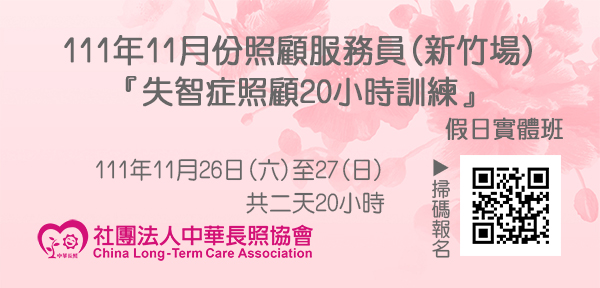 111年11月【長照積分課程】長期照顧服務人員『失智症照顧20小時訓練』(新竹場)
