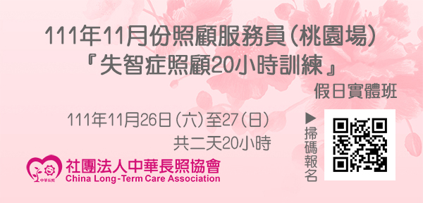 111年11月【長照積分課程】長期照顧服務人員『失智症照顧20小時訓練』(桃園場)