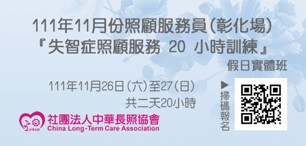 111年11月【長照積分課程】長期照顧服務人員『失智症照顧服務20小時訓練』(彰化場)