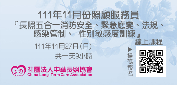 111年11月【長照積分課程】長期照顧服務人員『長照五合一消防安全、緊急應變、法規、感染管制、性別敏感度訓練』(台中主辦)
