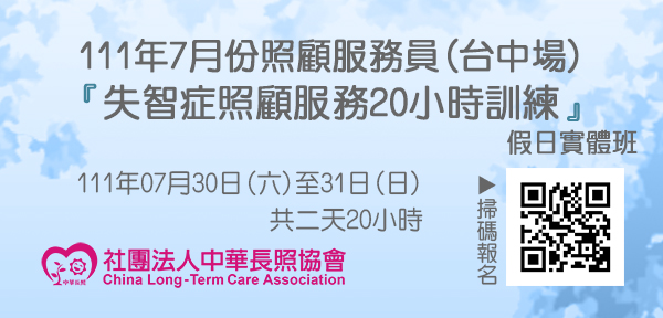 111年7月【長照積分課程】長期照顧服務人員『失智症照顧服務 20 小時訓練』(台中場)