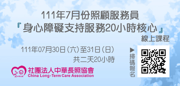 111年7月【長照積分課程】長期照顧服務人員『身心障礙支持服務20小時核心課程』(台中主辦)