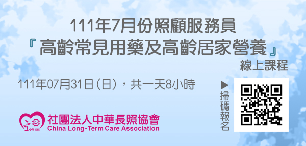 111年7月【長照積分課程】長期照顧服務人員『高齡常見用藥及高齡居家營養線上課程』(彰化主辦)