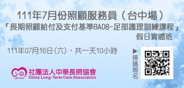 111年7月【長照積分課程】長期照顧服務人員『長期照顧給付及支付基準 BA08-足部護理訓練課程』(台中場)