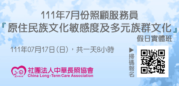 111年7月【長照積分課程】長期照顧服務人員『原住民族文化敏感度及能力訓練線上課程』(台中主辦)