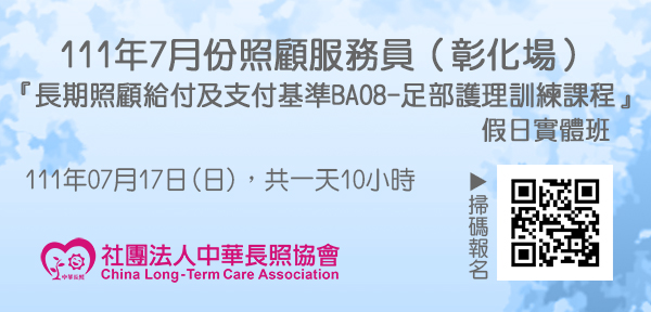 111年7月【長照積分課程】長期照顧服務人員『長期照顧給付及支付基準 BA08-足部護理訓練課程』(彰化場)