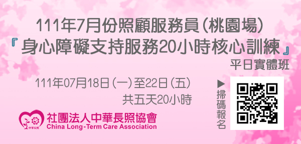 111年7月【長照積分課程】長期照顧服務人員『身心障礙支持服務20小時核心課程』(桃園主辦)
