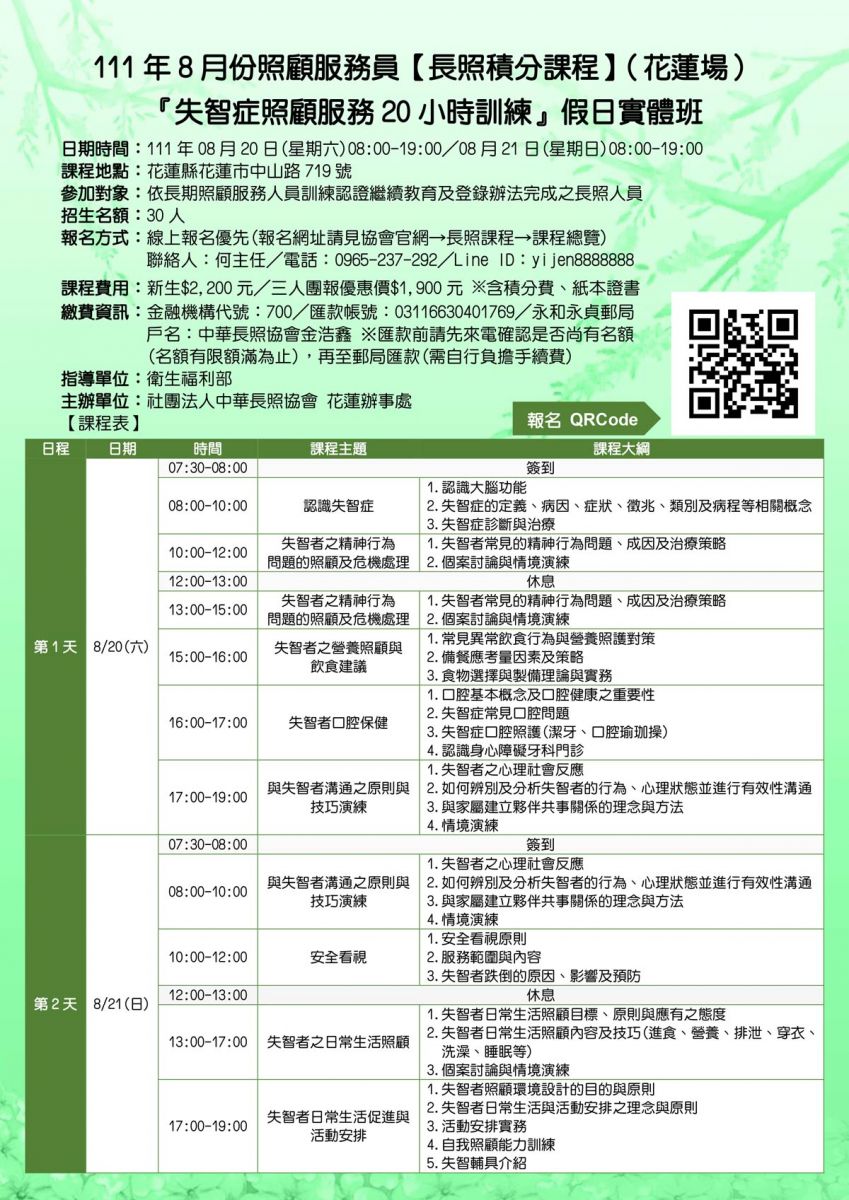 1.課程人數滿20人以上確定開班,未開班則全額退費。