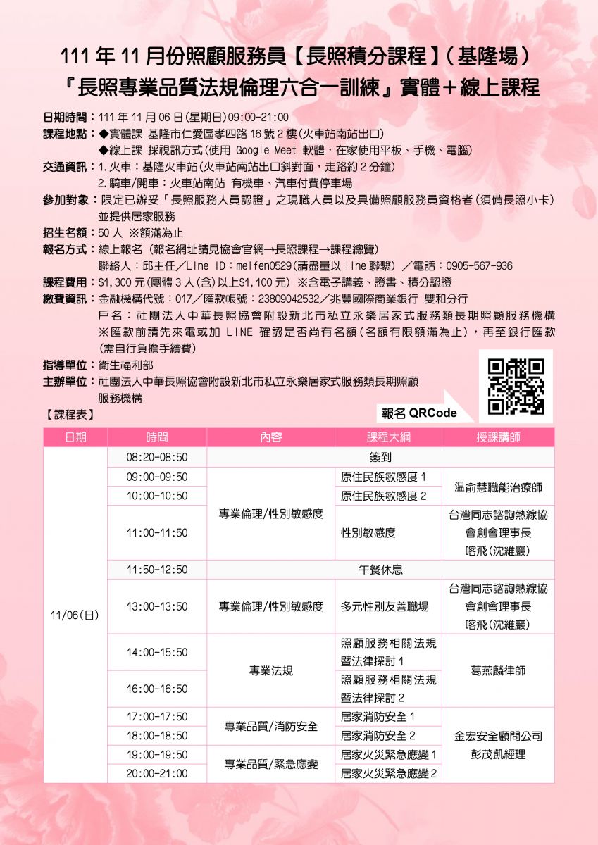 4.請保持視訊持續開啟,全程會錄影供審查單位審查,主辦單位會於系統控台管理學員上下線狀況,課程若每堂超過