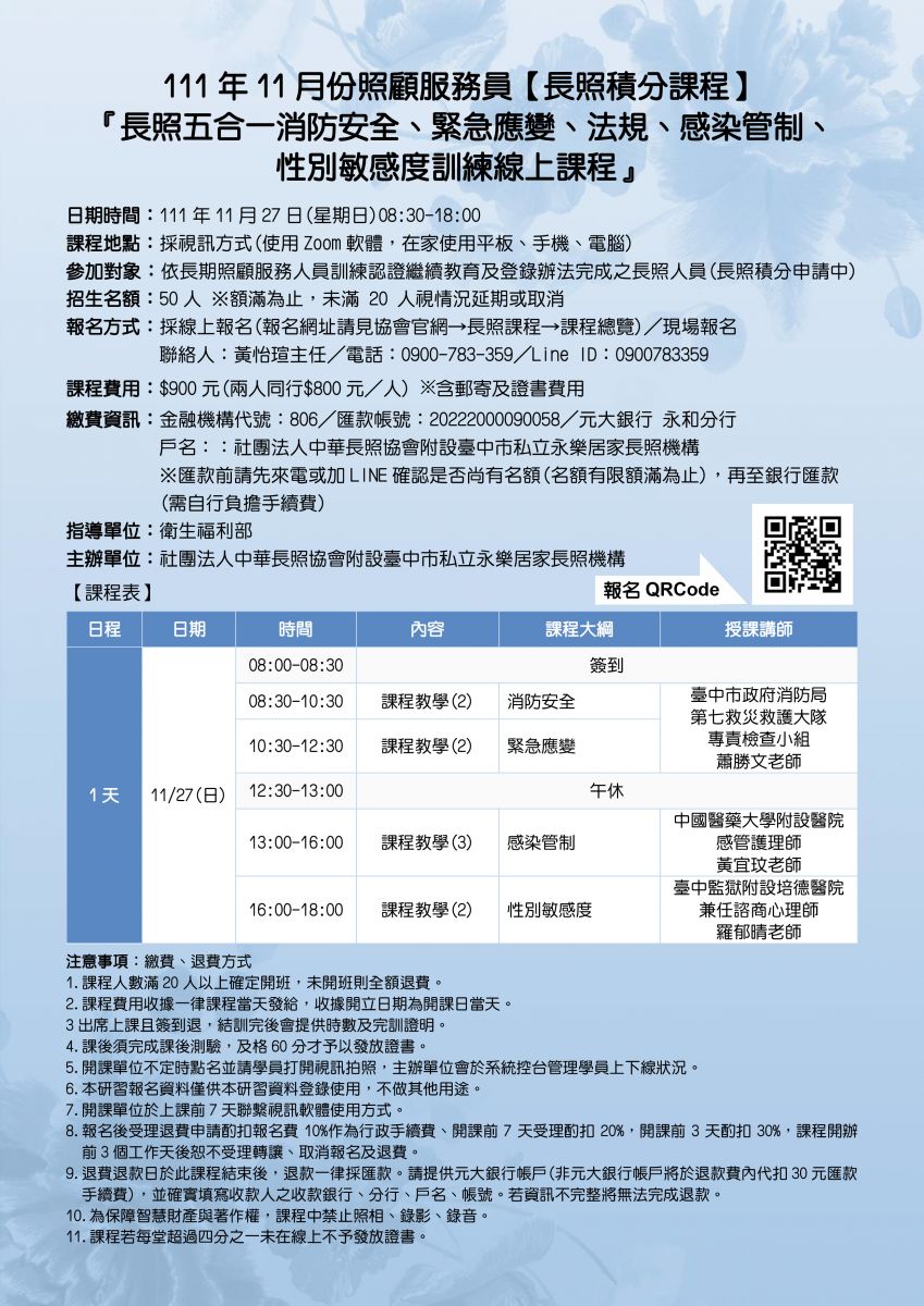 首頁 /  長照課程  / 居服員在職積分課程
