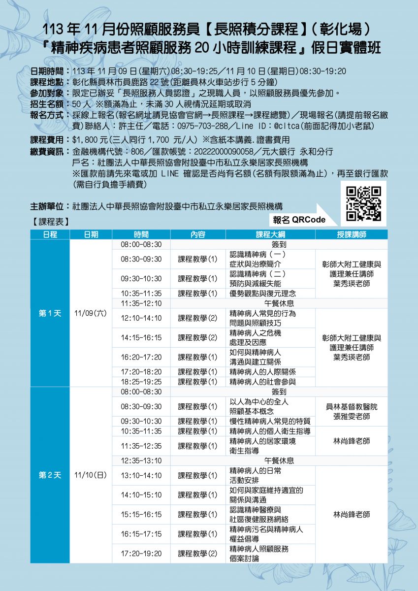 10.課程期間請攜帶長照人員小卡及個人證明文件以利查驗。