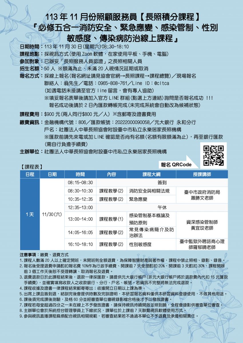 首頁 /  長照課程  / 居服員在職積分課程