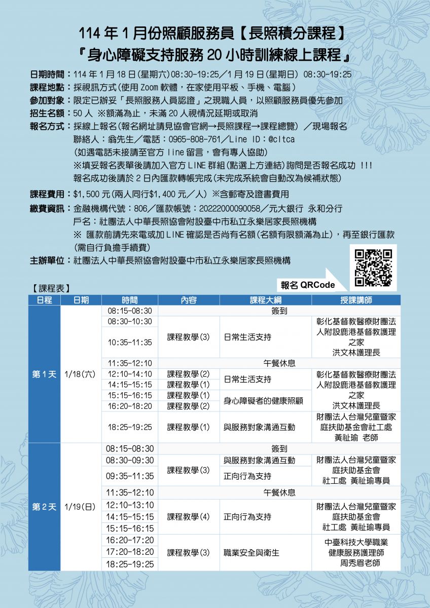1.課程人數滿20人以上確定開班,未開班則全額退費,開課單位於上課前7天聯繫視訊軟體使用方式。