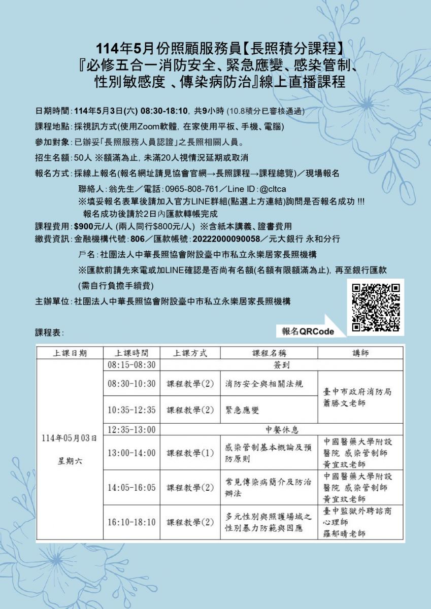 (12)不提供紙本講義,於課前2-3天提供雲端檔案自行下載。