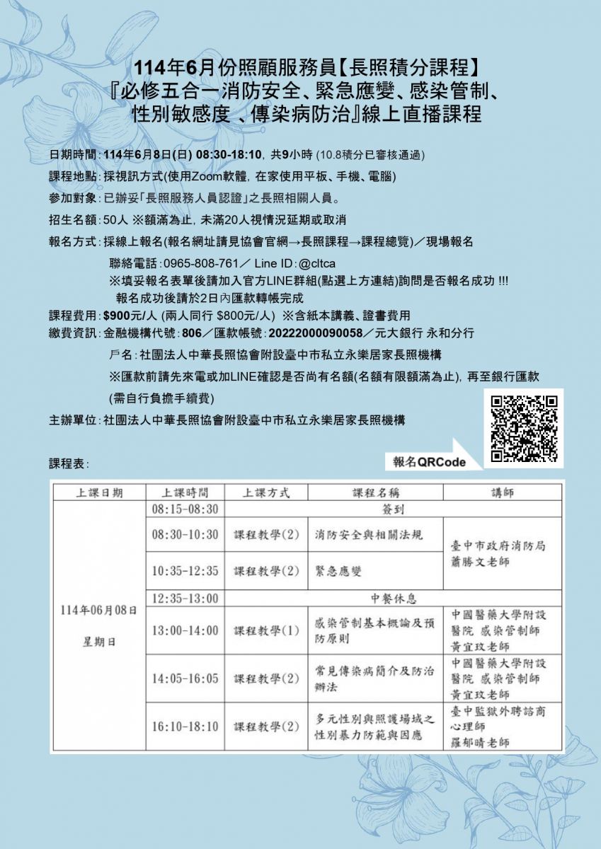 (13)上課期間不得提供長照服務亦不得同時參加其他長照積分課程,如被稽核到本單位不予退費及承擔相關責任。