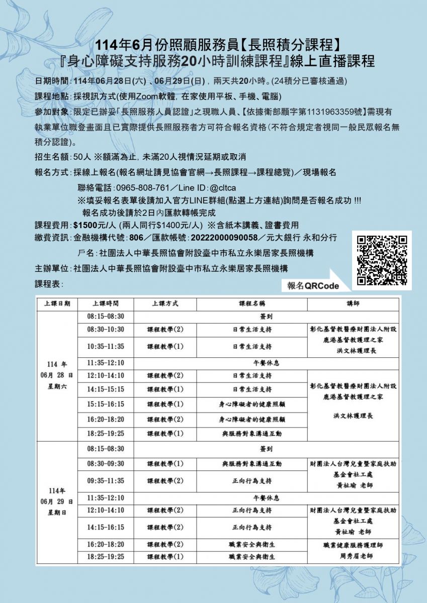 (15)【依據衛部顧字第1131963359號 】:需現有執業單位職登畫面且已實際提供長照服務者方可符合報名資格(不符合規定者視同一般民眾報名無積分認證)