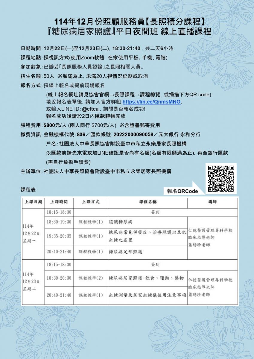 (13)上課期間不得提供長照服務亦不得同時參加其他長照積分課程,如被稽核到本單位不予退費及承擔相關責任。