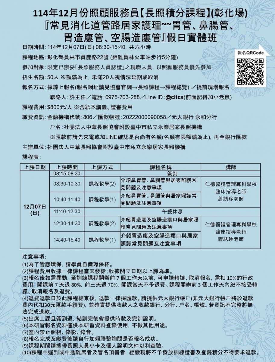 首頁 /  長照課程  / 居服員在職積分課程