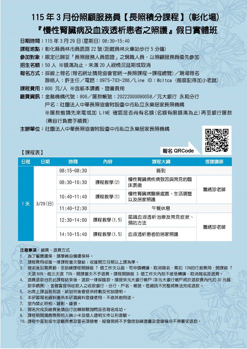 首頁 /  長照課程  / 居服員在職積分課程