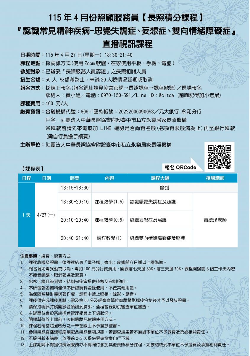 首頁 /  長照課程  / 居服員在職積分課程