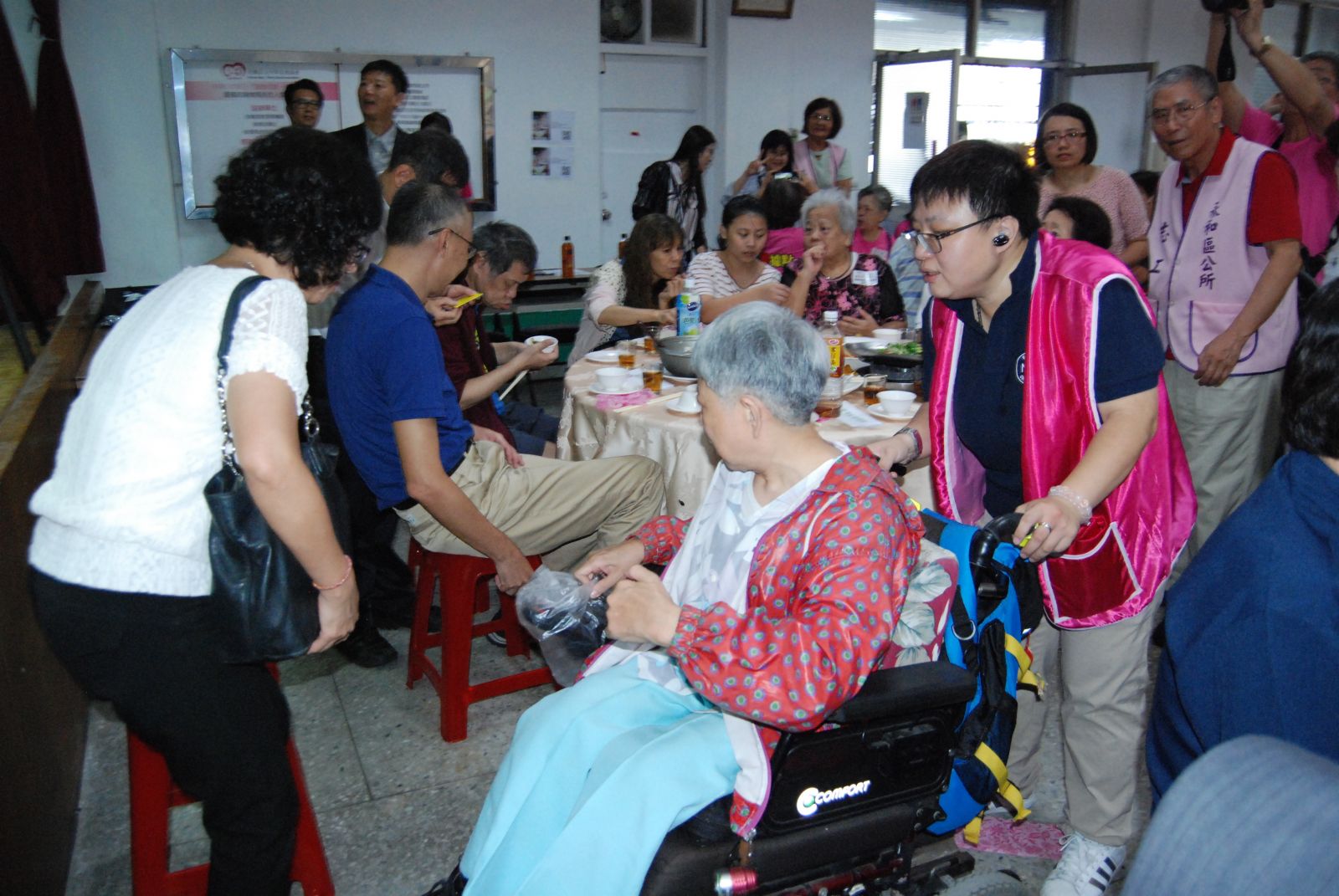 為使新北市的獨居長輩在重陽節感受到社會大眾的關懷,中華長照協會特於10/6(日)中午在新北市永和區永成市民活動中心舉辦「重陽有愛—關懷久久」獨居老人愛心餐會,邀請200位的獨居長輩及陪同的親友蒞臨共餐,也獲得台灣大車隊、愛之味、嘉強電子等企業的熱心支持,新北市副市長謝政達、新北市社會局許秀能副局長及老人福利科林妏燕科長亦特地到場致意,並為幸運的長輩抽出摸彩獎品。