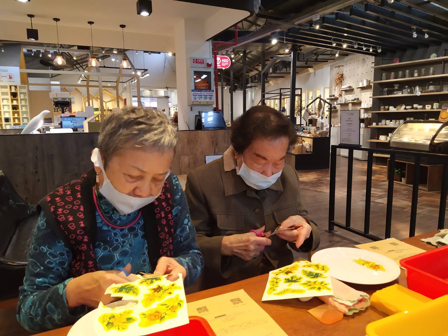 長輩們在安全無虞的環境中跟著門市人員的指示做手拉肧和陶瓷彩繪。