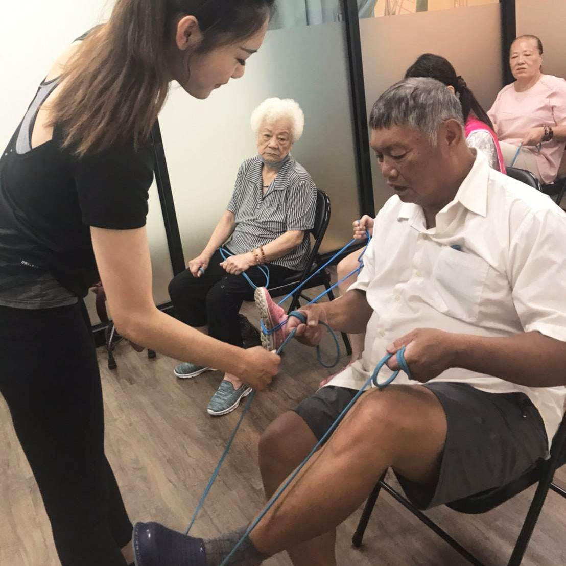 年輕有活力的瑜珈老師,讓長輩們也跟著充滿活力