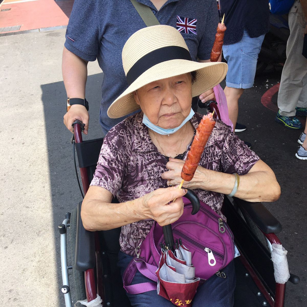 去烏來老街必吃的香腸,這次當然也沒錯過!香腸一拿到手,長輩們立刻安靜,