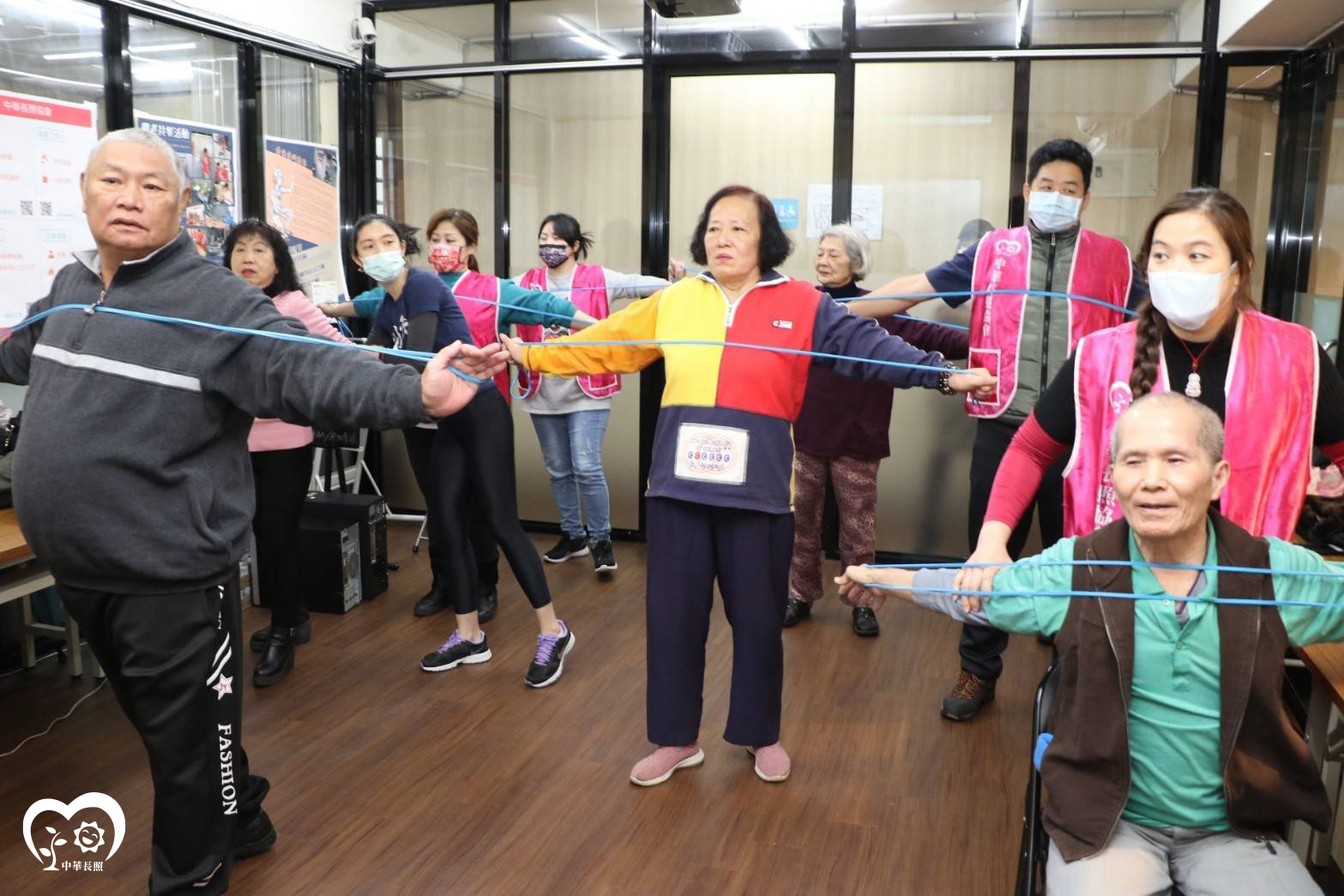 如同王阿姨所期待的,這一天協會邀請四季健身的物理治療師同時也是健身教練的Larry來據點,教練很貼心地針對銀髮族設計一套課程,