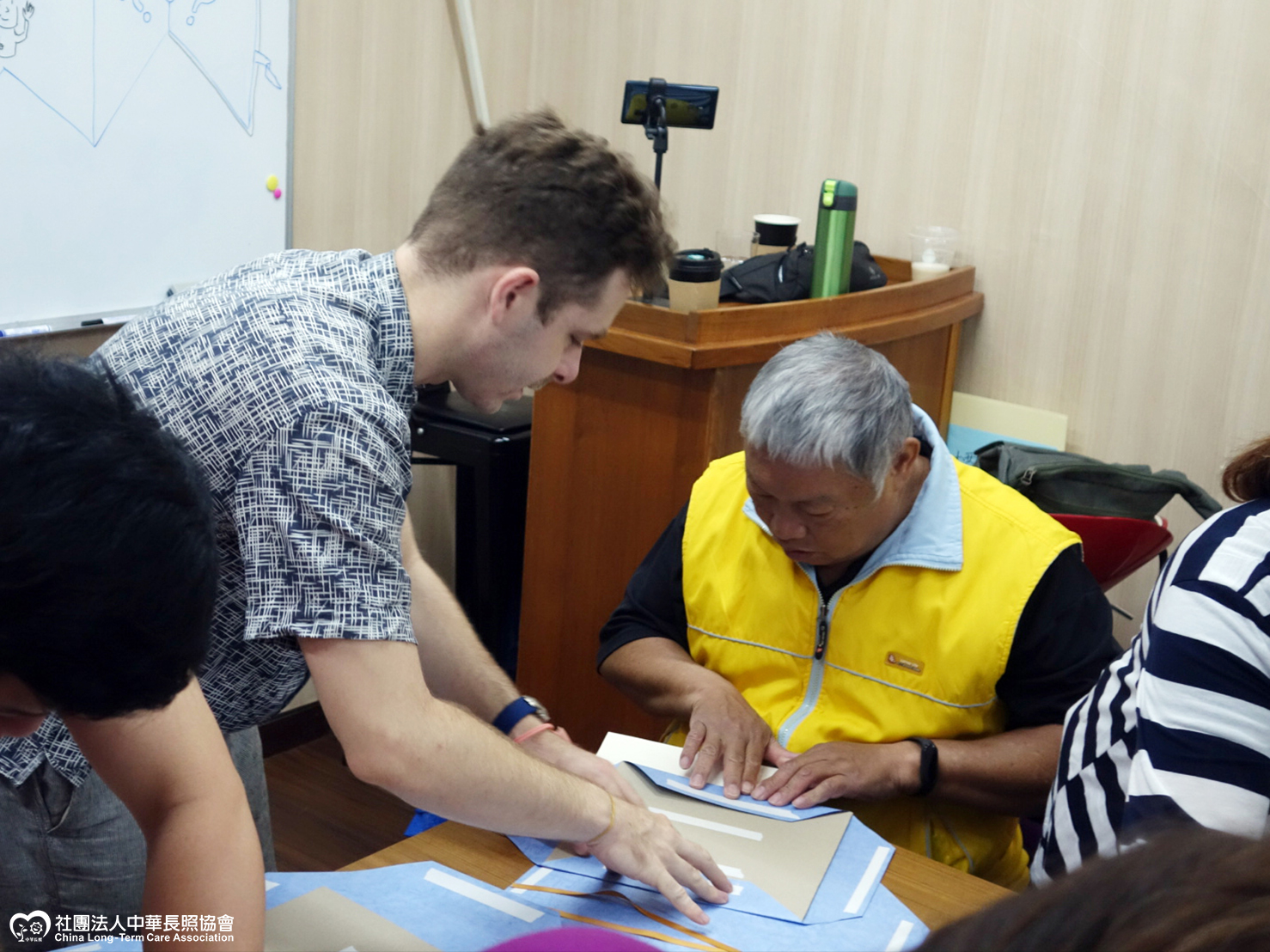 看到與自己國家不同的文化。第一堂課是製作書皮與內頁,看長輩們認真地聽著外籍老師的引導,