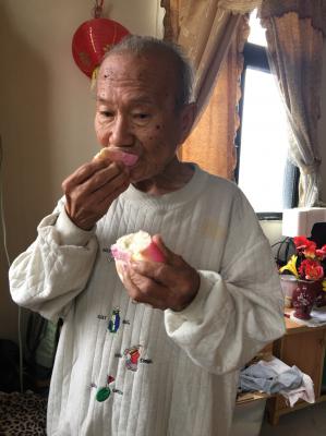 當照服員和爺爺說聲:「爺爺早安」,一句簡單的問候,同時也把早晨的陽光帶進爺爺的心中。爺爺非常歡欣的吃著和與照服員聊聊天,共享這美好的上午。