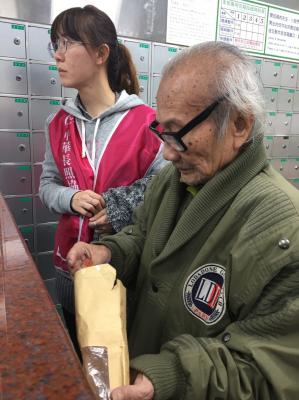 陪伴爺爺去郵局辦理事務,讓爺爺不用擔心自己在郵局處理的忙亂。同時帶著爺爺外出散散步,一同走動一下聊聊天,分享日常近況,更多增加爺爺外出活動的意願。