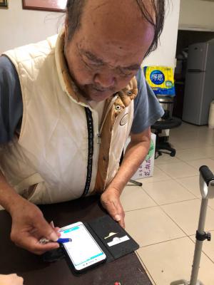 張爺爺因中風後手指關節變型,無法使用智慧型手機。照服員發現這問題後,購買觸控筆給爺爺,解決他生活的不便。現在張爺爺便可以順利的使用手機了。