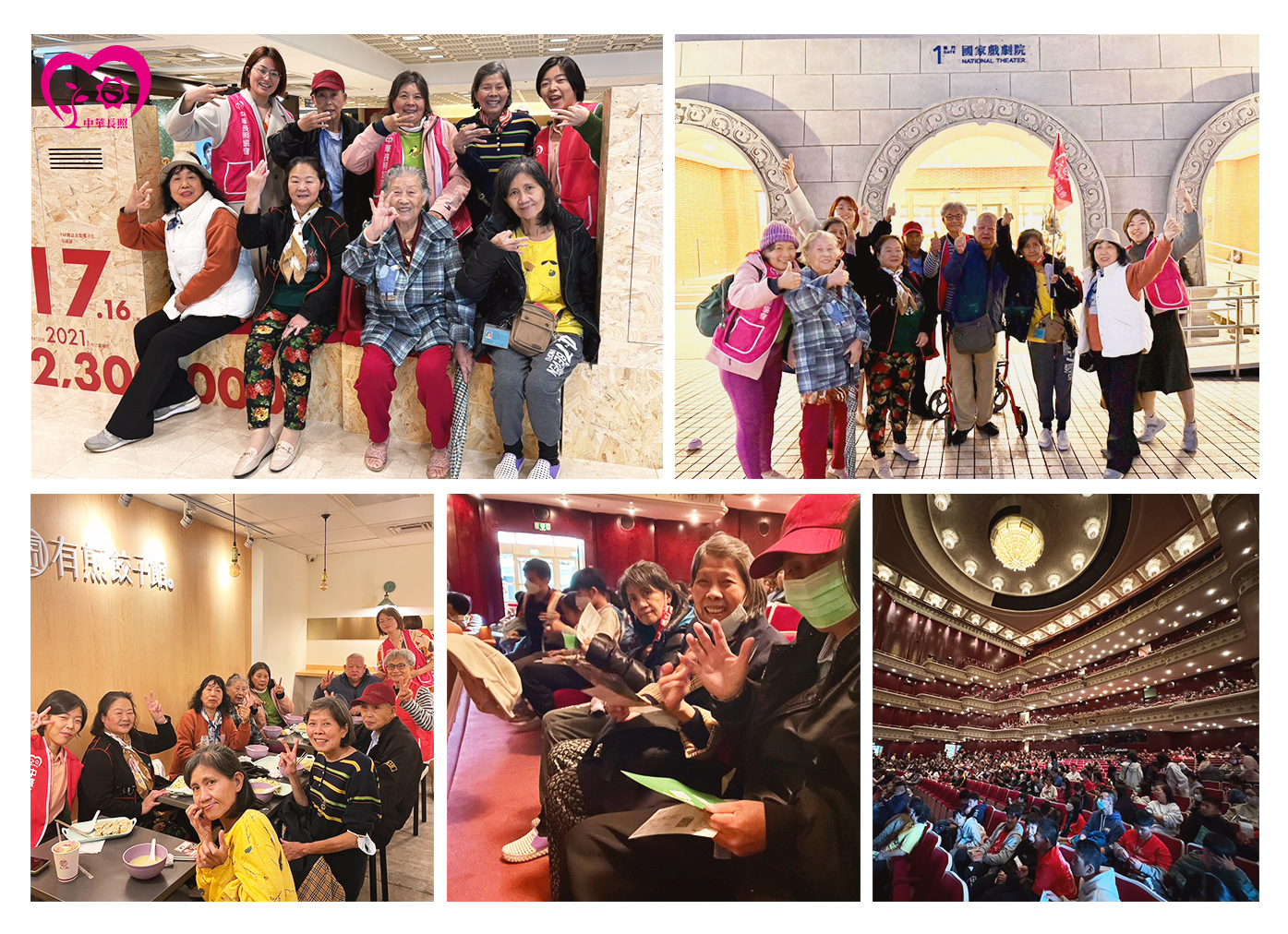 在出發前,長輩們其實有點緊張,每個人好奇的詢問:「會不會看不懂?」、「要坐很久嗎?」我們花了一點時間慢慢說明、輕聲鼓勵,直到大家願意試著走出熟悉的日常,燈暗下來、音樂響起的那一刻,一切的擔心都悄悄消失了,舞台上的旋律、表演和笑點,很快吸引了所有人的目光,長輩們看得專注、笑得開懷,跟著劇情起伏,有時輕聲討論,有時忍不住笑出聲。
